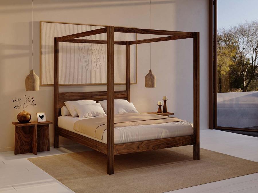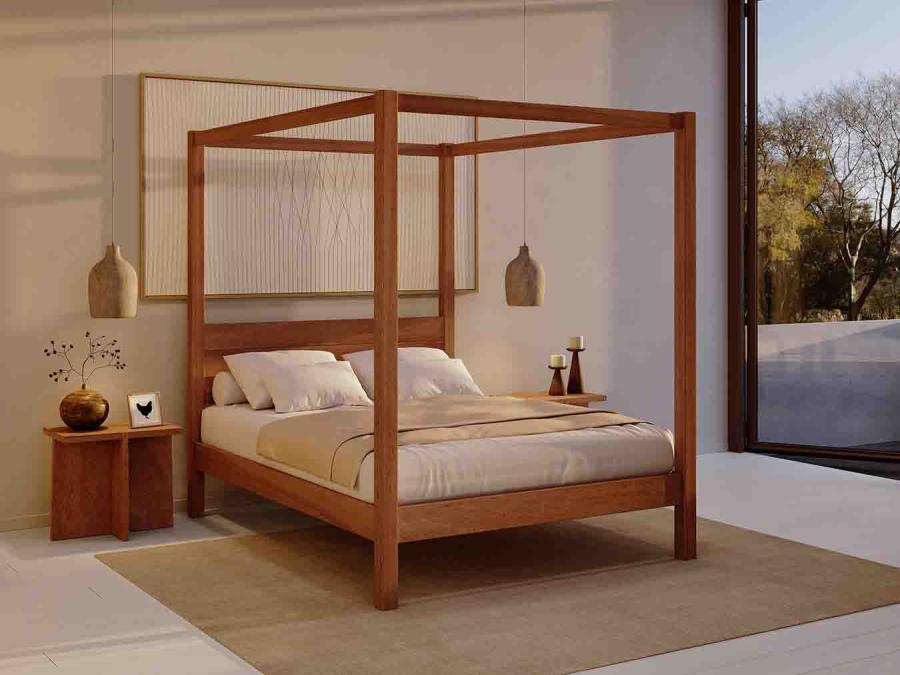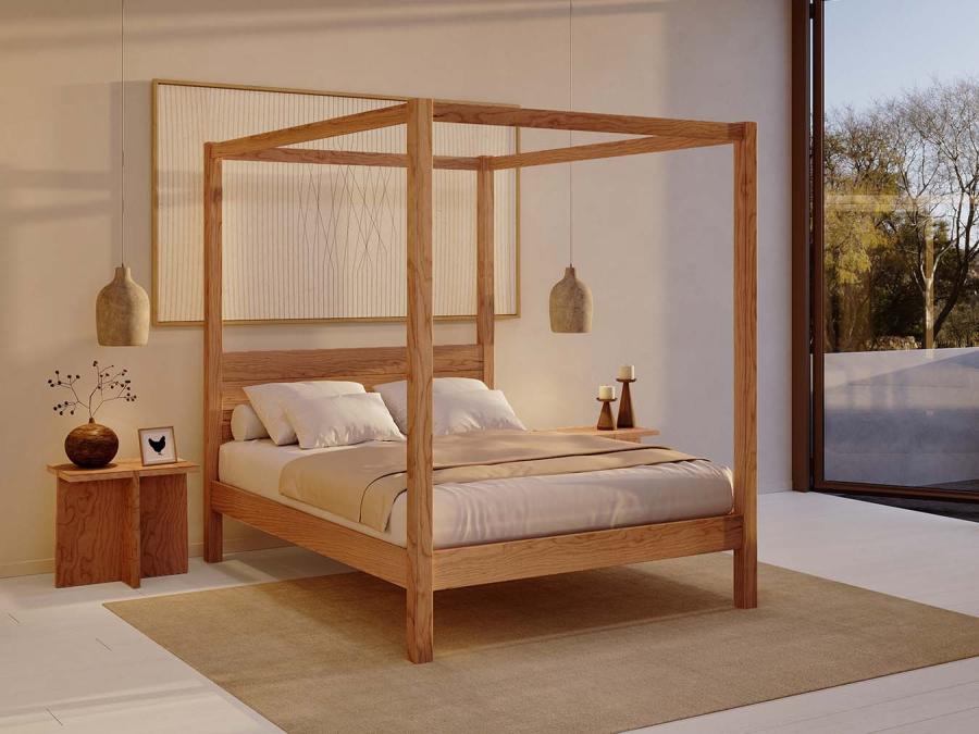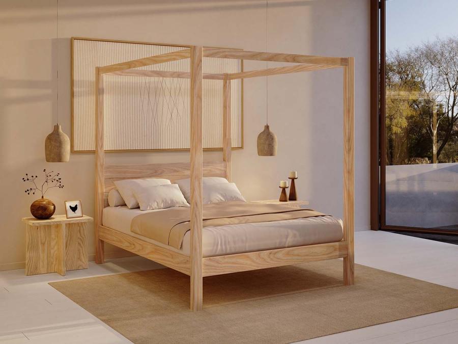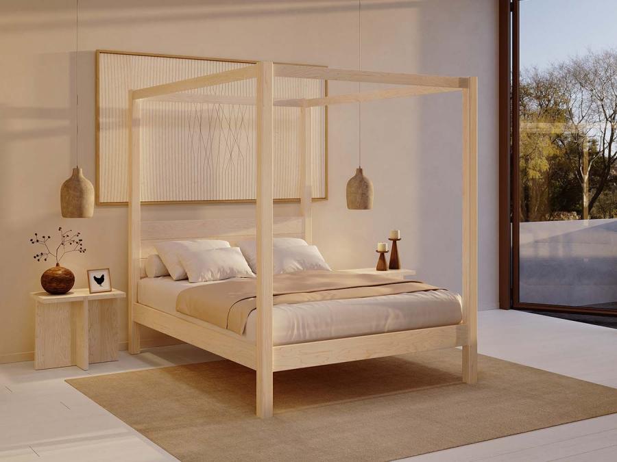 Ce superbe lit classique à quatre colonnes est somptueux, moderne et fait main dans un bois scandinave de très belle qualité. Son pied de lit sobre lui donne des contours épurés qui mettent en valeur le décor et le mobilier du reste de la pièce.